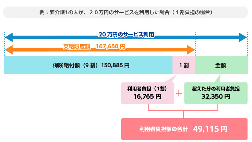 利用者負担の割合分を負担しますが、限度額を超えた分については利用者の負担となります。